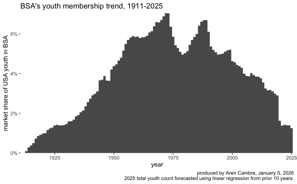 By casting a nationwide spotlight on BSA’s bigotry, this case kicked off a decades-long membership slump. Today, we are 82% below our peak market share of youth: